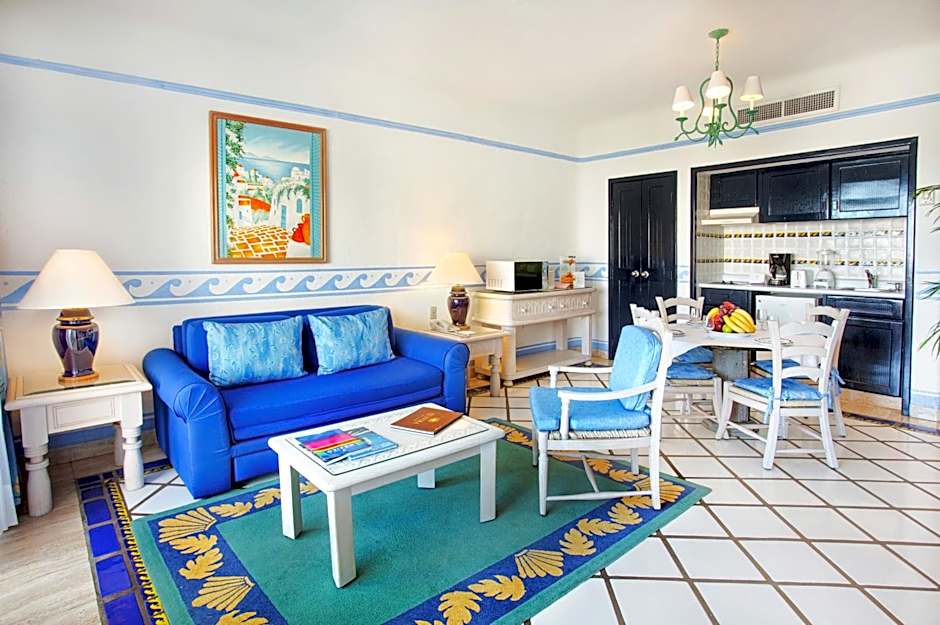 The spacious suite features ocean view living space, including a private bedroom and bathroom and separate dining area. The modern kitchenette is fully equipped with essential appliances and a complement of dishes and utensils for six people.